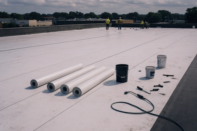 After installation, we offer seasonal checks, seam touch-ups, and drain cleaning to keep the roof performing and to preserve warranty eligibility.